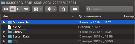 Файл file.txt будет записан в «HomeDirectory» приложения: