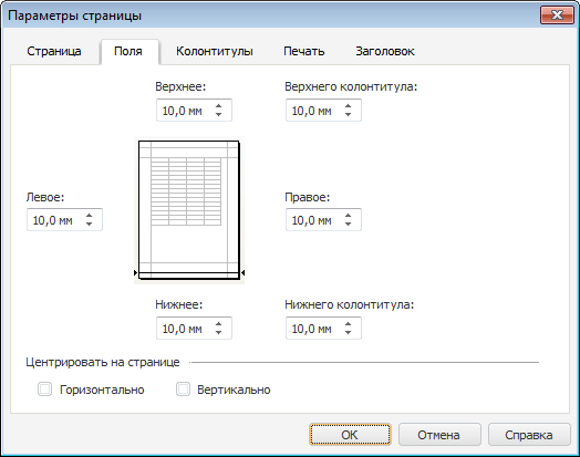 Для расширенной настройки полей и ширины колонтитулов на странице перейдите на вкладку «Поля» окна «Параметры страницы»: