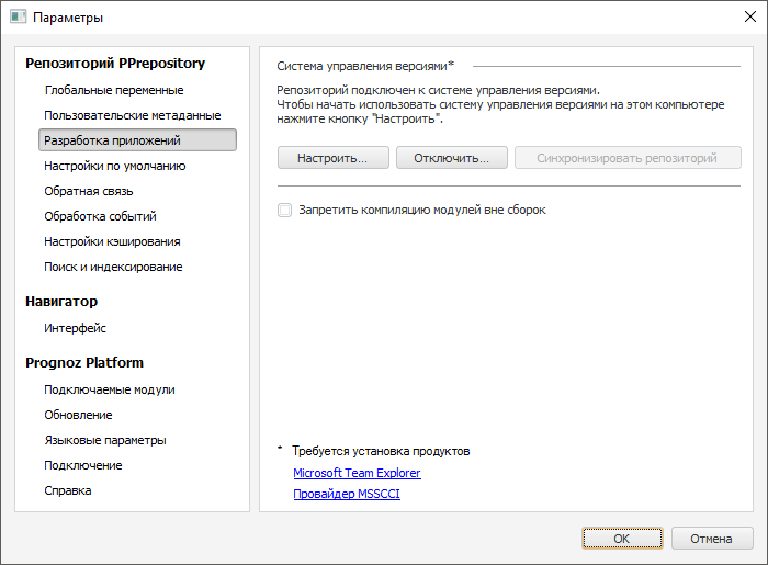 Пользователи, чьи компьютеры не были настроены на работу с VCS, будут использовать версии объектов, хранящихся в репозитории, окно «Система управления версиями» при этом будет иметь следующий вид:
