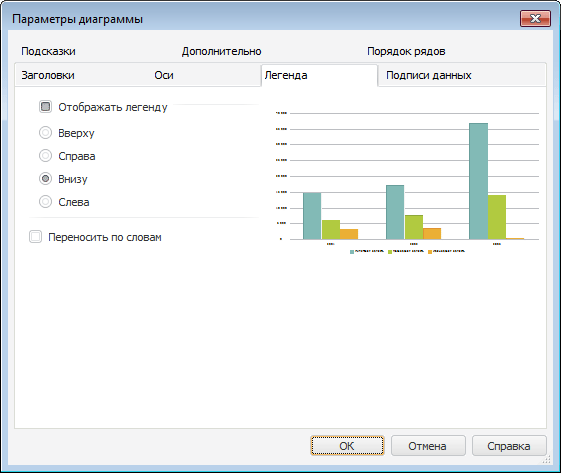 «Легенда» диалогового окна «Параметры диаграммы»