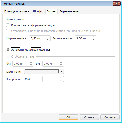 Для настройки общих параметров легенды перейдите на вкладку «Общее» диалогового окна «Формат легенды».