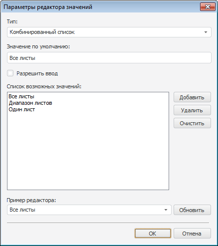 Разрешить ввод. При установленном флажке в поле редактора можно ввести значение, которое отсутствует в раскрывающемся списке;