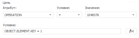 В дополнительном условии укажите сравнение атрибута элемента со значением, соответствующим типу данных идентификатора атрибута. Пример заданной цели на чтение элемента с ключом «1»: