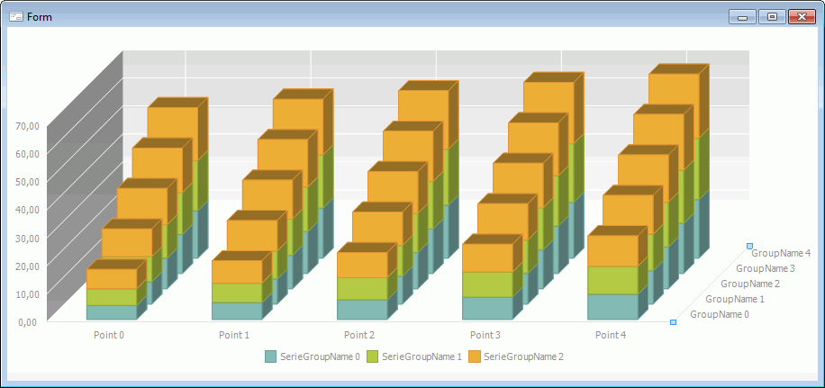 После открытия формы в компоненте ChartBox отрисуется объемная гистограмма с выделенной осью Z: