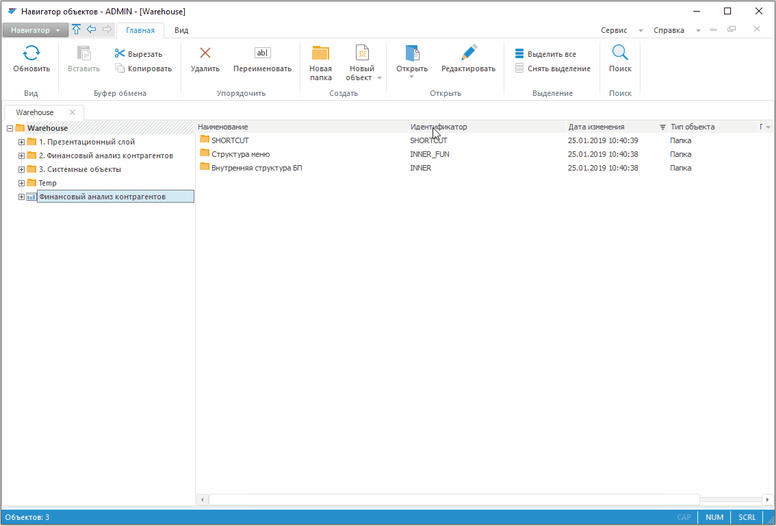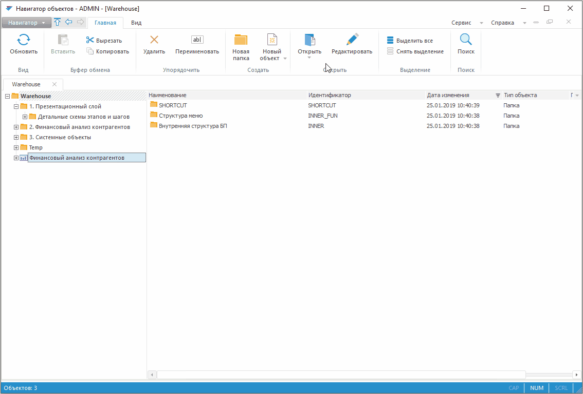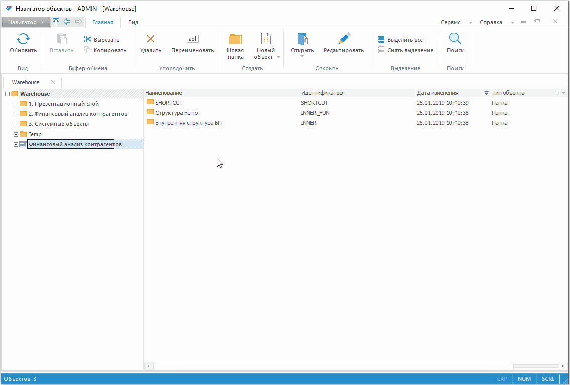Создайте внутреннюю структуру приложения для размещения объектов в папке «Внутренняя структура БП»: