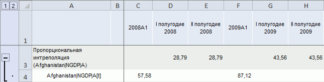 Интерполяция (пропорциональная). Дезагрегирует данные с применением пропорциональной интерполяции.