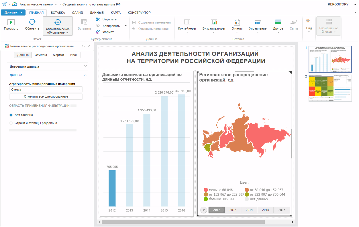 Построение аналитической панели | Экспорт аналитической панели в режиме слайдов