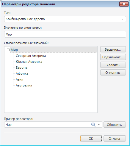 Комбинированное дерево отображает набор возможных значений в виде иерархического списка (или дерева).