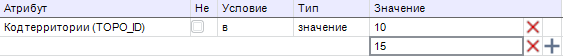 Установите флажок в столбце «Не», если требуется задать обратное условие. Например, значение атрибута не равно пяти.