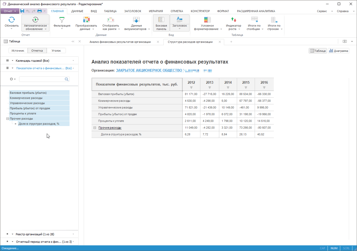 По умолчанию в редакторе выражение рассчитывается по всем элементам измерений источника данных. Для расчёта выражения только по выбранным элементам применяется фильтрация.