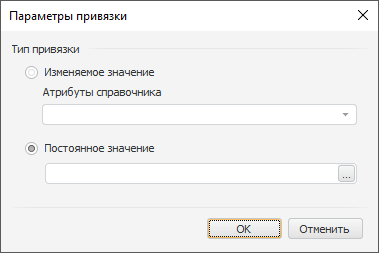 Дерево предназначено для задания привязки атрибутов текущего справочника к параметрам связываемого справочника или для задания постоянного значения.