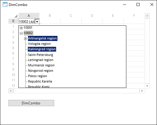 NOTE. The following conditions should be met on moving the cell in editing mode for correct restitution of dictionary selection used in the DimCombo control: