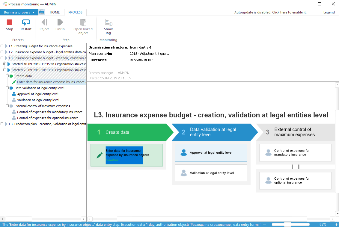 • Creating a process and setting up its stages and steps: execution order and deadlines, parameters, objects for data input, validation and calculation