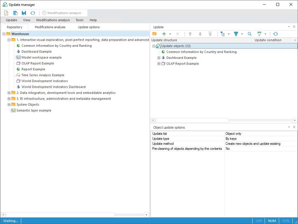 The Update Manager tool is used for synchronization of objects between repositories, and for their update.