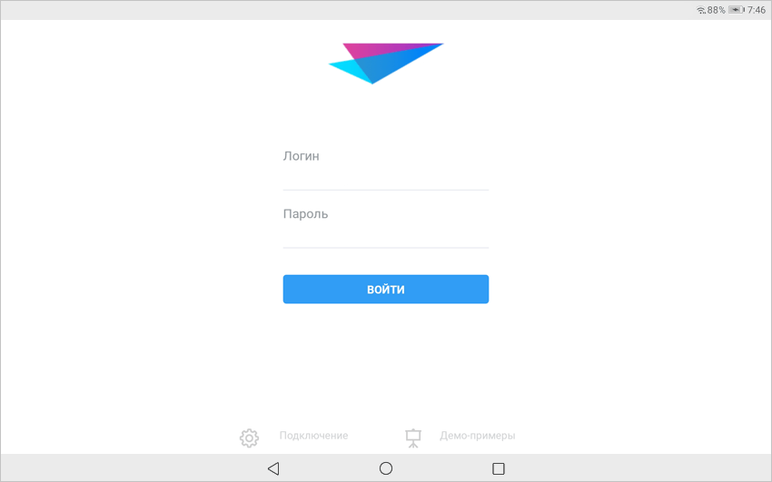 To skip the demo presentation, click the Skip button. See demo examples if required, set up connection to mobile platform server and log into the system.