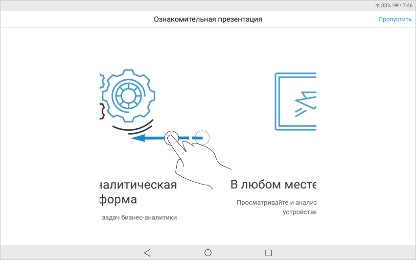 To move between slides, swipe from right to left or from left to right. After the first slide is swiped, it is available to scroll slides forward and back to the last one.