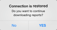 If internet connection is interrupted during the loading, it is prompted to continue report loading when internet connection is restored: