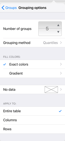 Conditional formatting by groups is executed from the Rules dialog box (Table > Conditional Formatting > Rules):