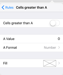 Cells Greater Than A. Enable or disable the fill by the selected rule for the cells.