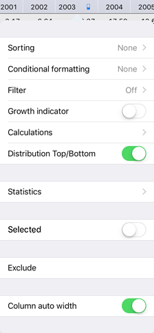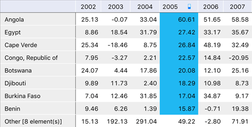 Created in the mobile application. Distribution is applied only to values in a single table column or row. If distribution for other table column or row is set up, the current distribution is removed. After distribution function the percent of top values from the total will be in blue and the other values will be summed up and aggregated into the Other element: