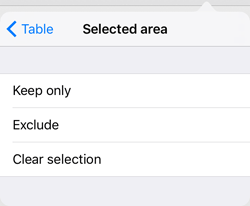 To exclude data from data table, select the item in the Table dialog box in the Selected Area section: