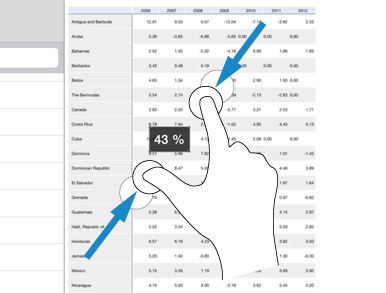 To zoom in a table, pinch out with two fingers: