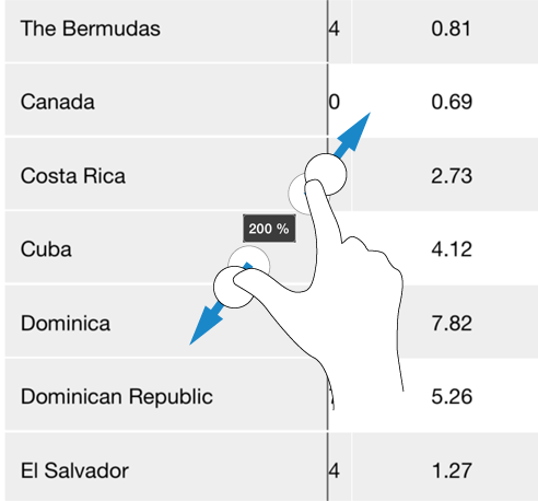 To zoom in and out a table, use a standard two-finger pinch.