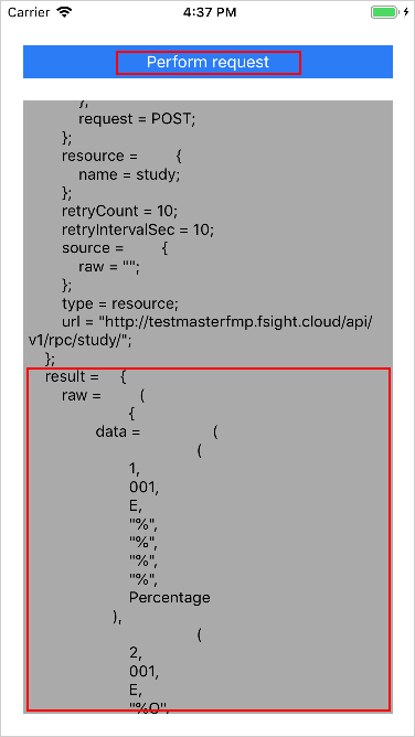 To execute the example, click the Perform Request button. Clicking the button initializes a request to resource. The mobile platform server returns corresponding data.