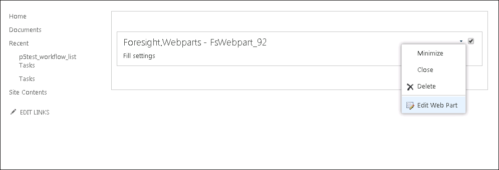 Before adding a web part make sure that the Foresight.Webparts.wsp solution is deployed and activated on Microsoft SharePoint portal.