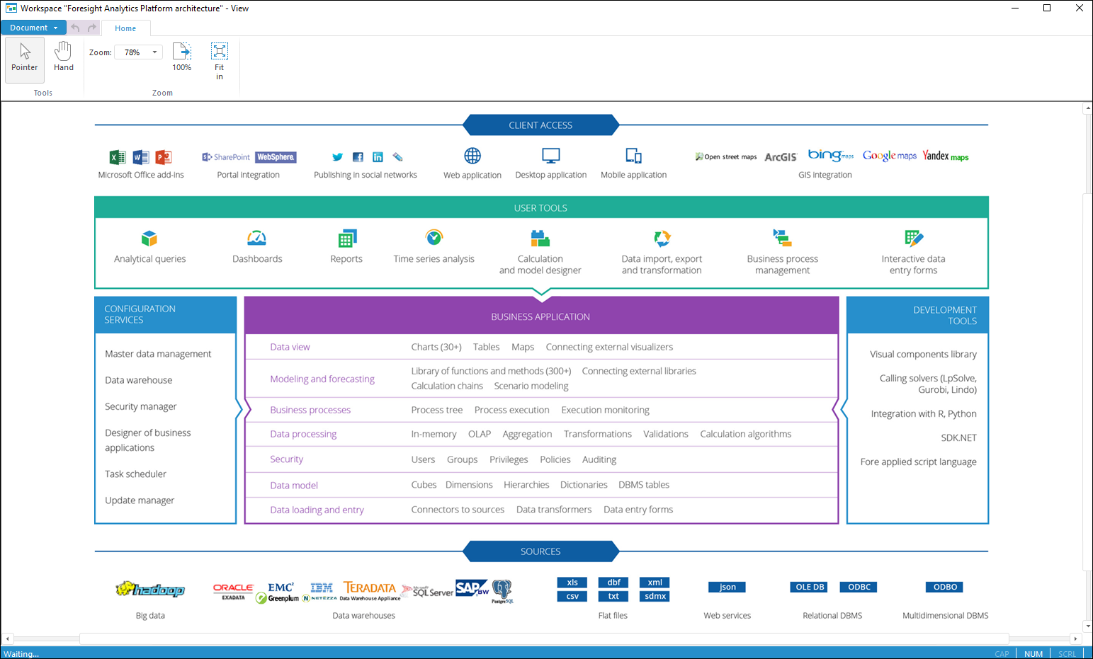 The Technological Components section contains architecture of Foresight Analytics Platform: