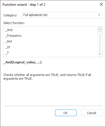 The Function Wizard dialog box opens after executing one of the operations: