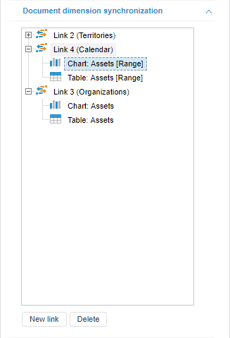 NOTE. Dimension synchronization is not set up automatically, even if the blocks configured to the same data source are created. All synchronization settings are determined by the user.