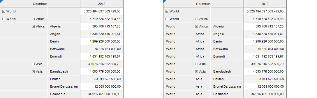 NOTE. The report is not recalculated on collapsing or expanding the hierarchy.