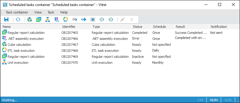 Starting Task Scheduler | Viewing Task Scheduler Parameters | Scheduled Tasks Container