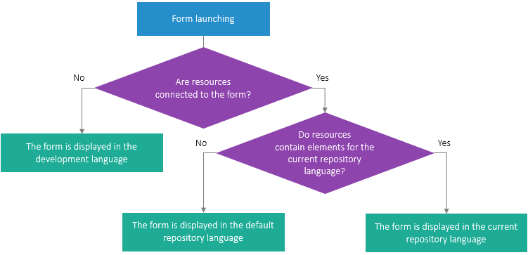 If elements for the current repository language are found in resources, the form is displayed in the current repository language.