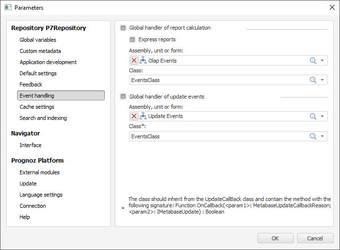 NOTE. The class must inherit the UpdateCallBack class and contain the method with the following signature: