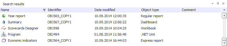 After executing the operations, the selected object in the search results is selected in the objects list.