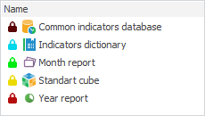 In the discretionary permission display mode each object is marked with an icon that shows permissions to this object for the selected subject.