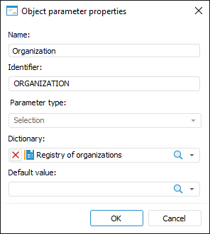 A parameter can be set up in the Object Parameter Properties dialog box: