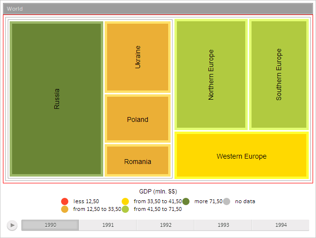 To execute this example, the page must contain the TreeMap component named treeMap (see Example of Creating the TreeMap Component). Hide headers of item groups, disable automatic calculation of item text color: