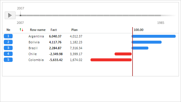 Executing the example requires that the HTML page contains the RatingChart component named ratingChart (see Example of Creating the RatingChart Component). Replace the external timeline with the rating chart native timeline, and place this timeline on the top:
