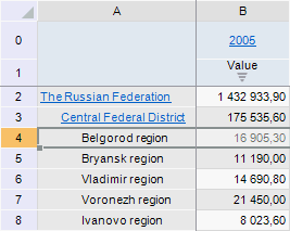 After executing the example the Belgorod Area element is removed via coordinates of the fourth row of the express report table: