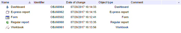 The MetabaseObjectsListView component is a container for displaying a list of objects of the selected folder in the repository navigation window.