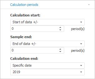 To set up method calculation period, use the Calculation Periods tab on the side panel. The set of parameters that determine the period of series calculation depends on the used calculation method.