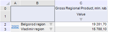 | 2 | Rows. Dimensions names in rows from sidehead. |