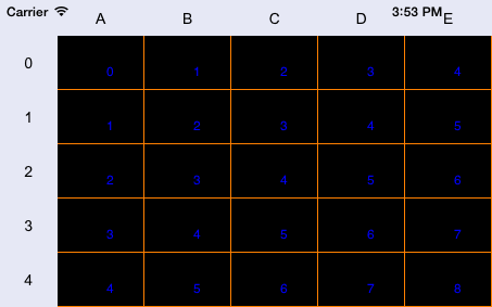 // Create two default styles NuGridCellStyle *firstStyle = [NuGridCellStyle deafultStyle]; // Set the first style name [firstStyle setStyleName:@"This is the first style"]; NuGridCellStyle *secondStyle = [NuGridCellStyle emptyStyle]; // Set the second style name [secondStyle setStyleName:@"This is the second style"]; // Set text font parameters [secondStyle setFont:[UIFont fontWithName:@"Courier New" size:20]]; // Set text font for the second style [secondStyle setTextColor:[UIColor blueColor]]; // Set color for table cell borders [secondStyle setBorderColor:[UIColor orangeColor]]; // Set underlined text style for the second style [secondStyle setUnderline:YES]; // Set text alignment by cell center for the second style [secondStyle setTextAlignment: UITextAlignmentCenter]; // Set table cell background [secondStyle setBackgroundColor:[UIColor colorWithRed:(0.97f) green:0.93f blue:0.57f alpha:1]]; // Merge settings of both styles [firstStyle mergeWith:secondStyle]; // Apply the first style NuGridTheme *theme = [proxyDatasource gridViewTheme:[contr gridView]]; [theme setDefaultStyle:firstStyle]; [proxyDatasource gridView:[contr gridView] setTheme:theme];