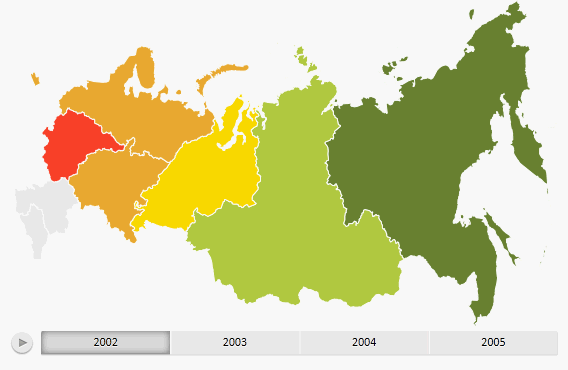 A map is an object that displays source data as a territory map and shows detailed characteristics of regions. For example: