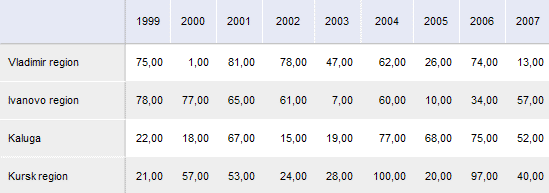 A table is an object for showing data from the specified source as a table. Example of a table:
