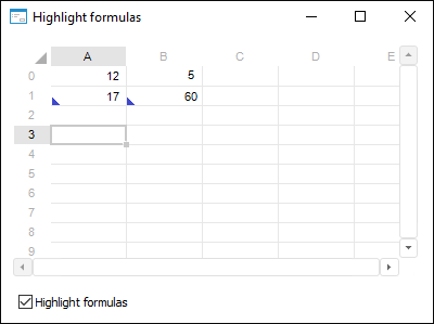 The HighlightFormulas property determines whether the table cells with formulas are highlighted.