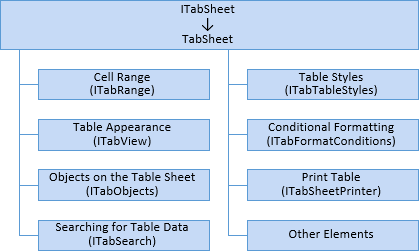 In the Tab assembly, the table is implemented by the ITabSheet interface. All interfaces that are used to set up table parameters can be divided into the following groups: